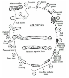 La medicina ha scoperto che siamo costituiti da quasi 2 chilogrammi di microrganismi di ogni specie, e questi sono suscettibili di metamorfosi da stadi inferiori e apatogeni di colloide o protide a stadi superiori patogeni come funghi e/o batteri.